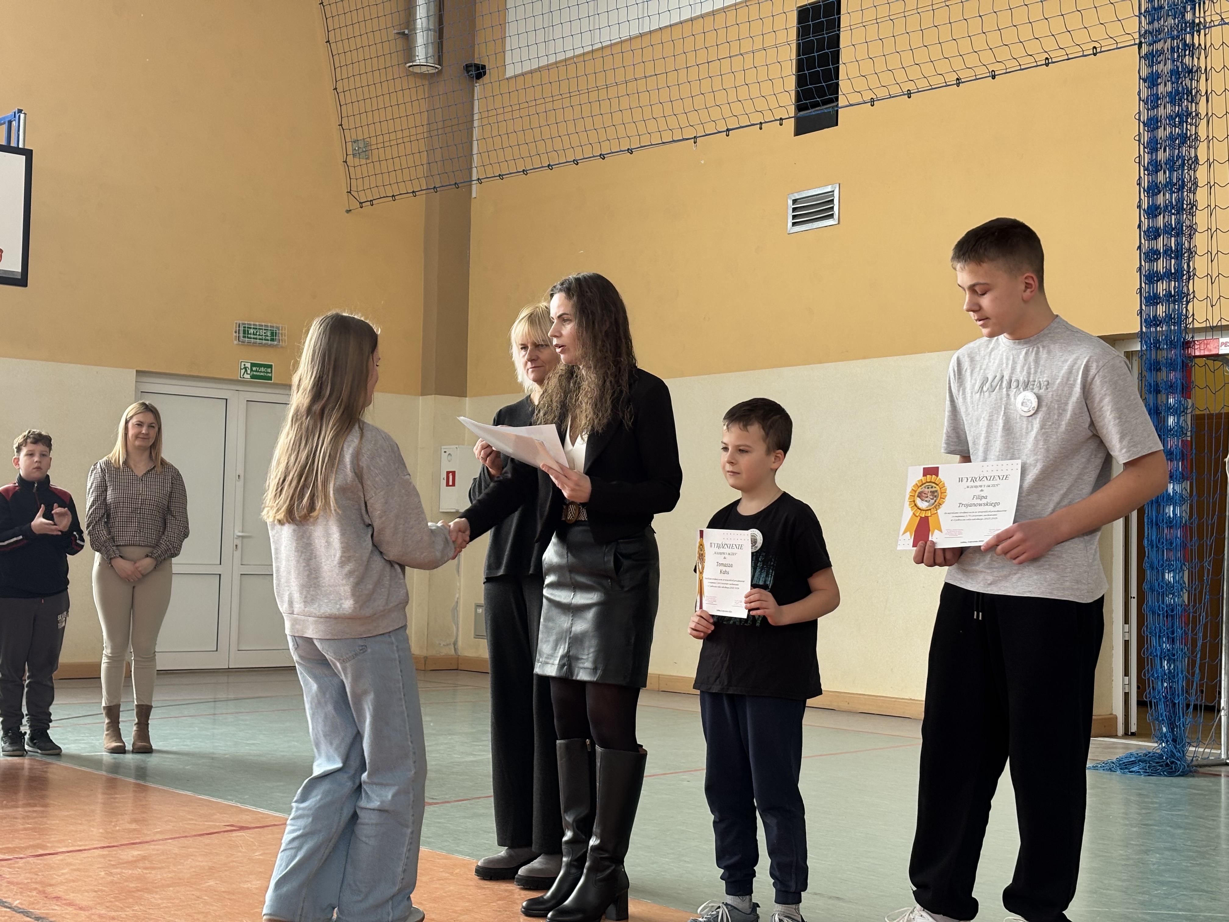 Dyrektor szkoły – Krystyna Drafc przekazała wszystkim wyróżnionym klasom i uczniom serdeczne gratulacje oraz życzyła dalszych sukcesów w nauce.
