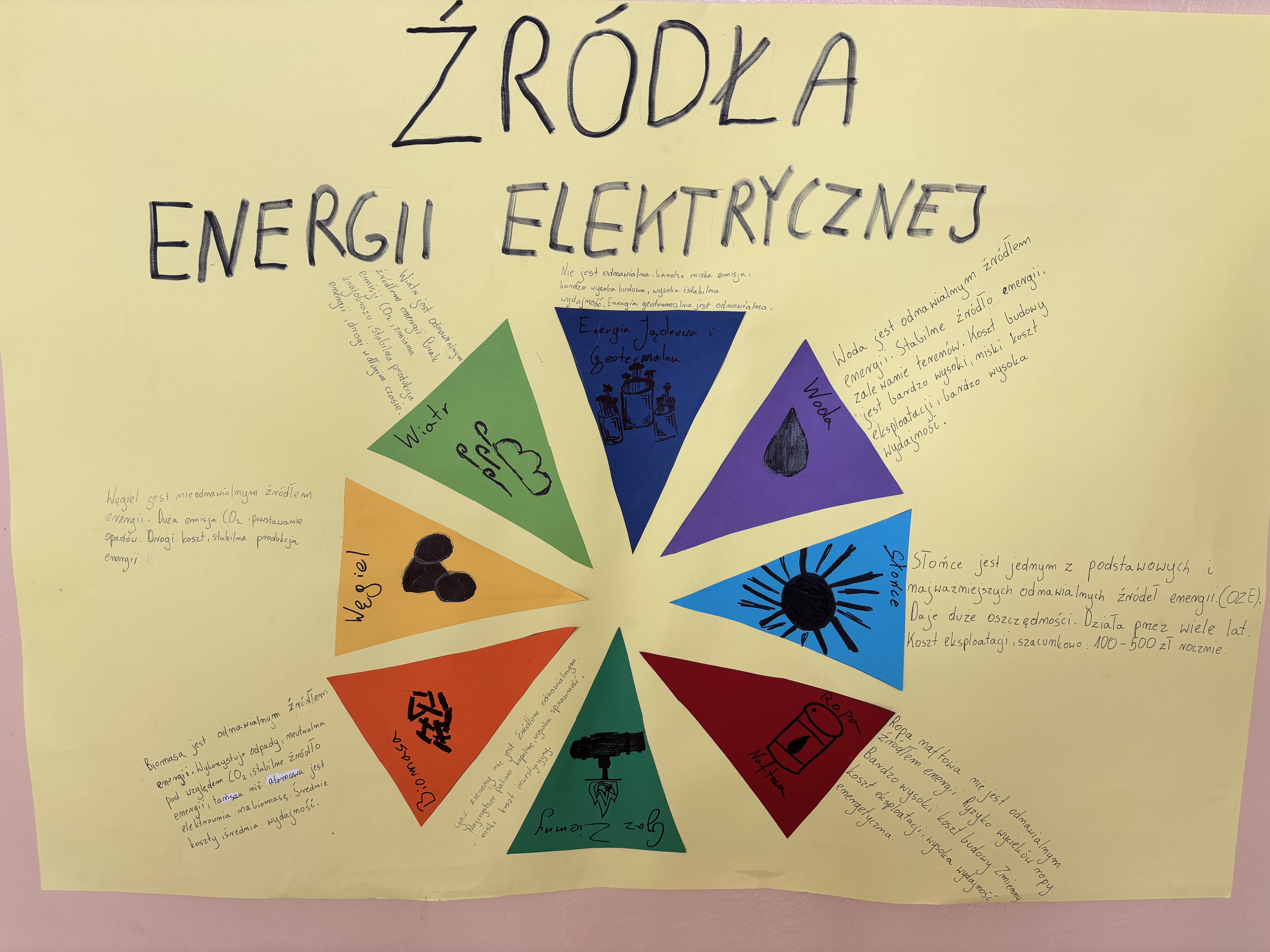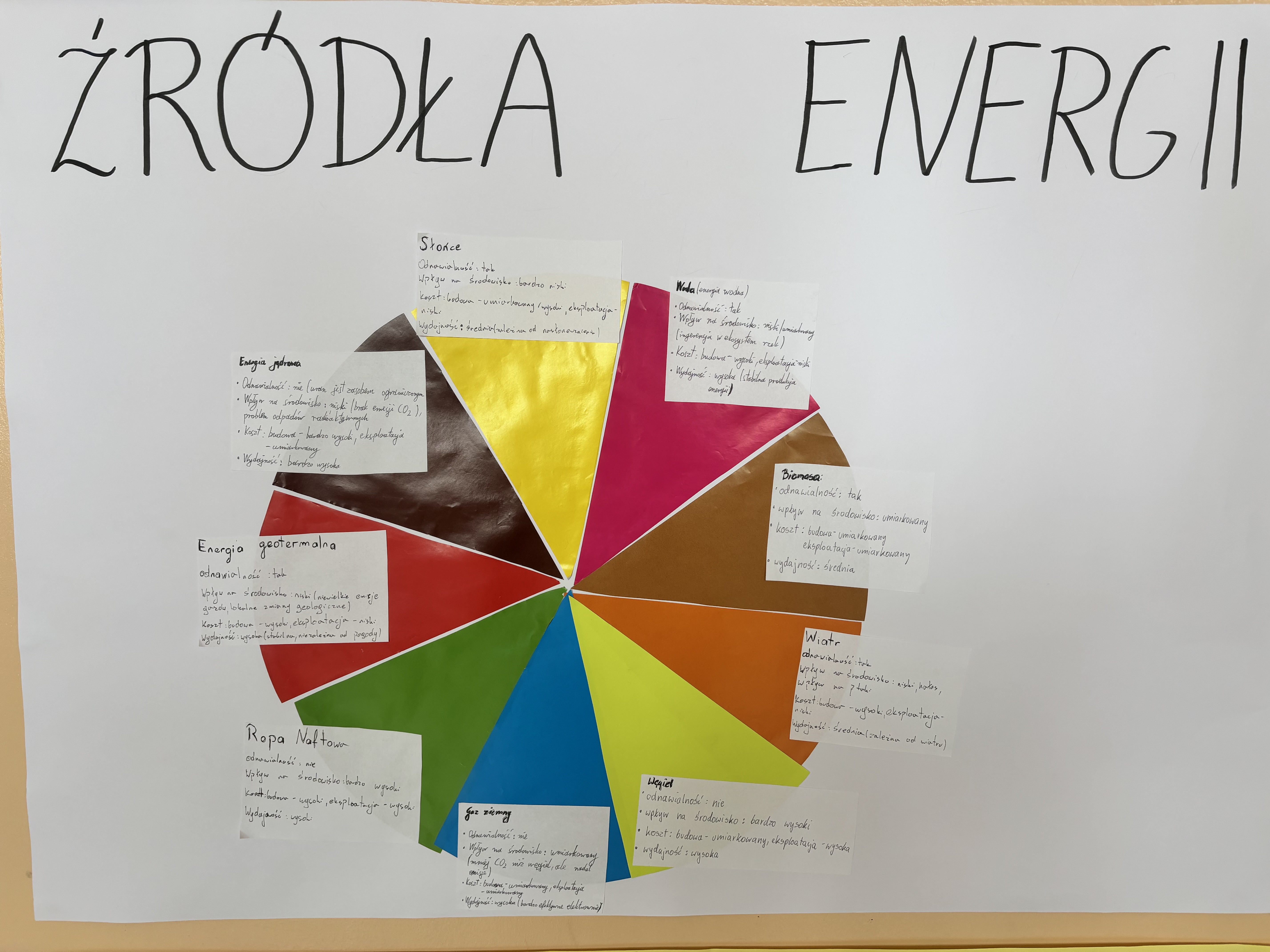 Zrealizowaliśmy ostatnie zadanie w ramach projektu „Lider lokalnej ekologii", które polegało na przygotowaniu plakatów dotyczących różnych źródeł energii.