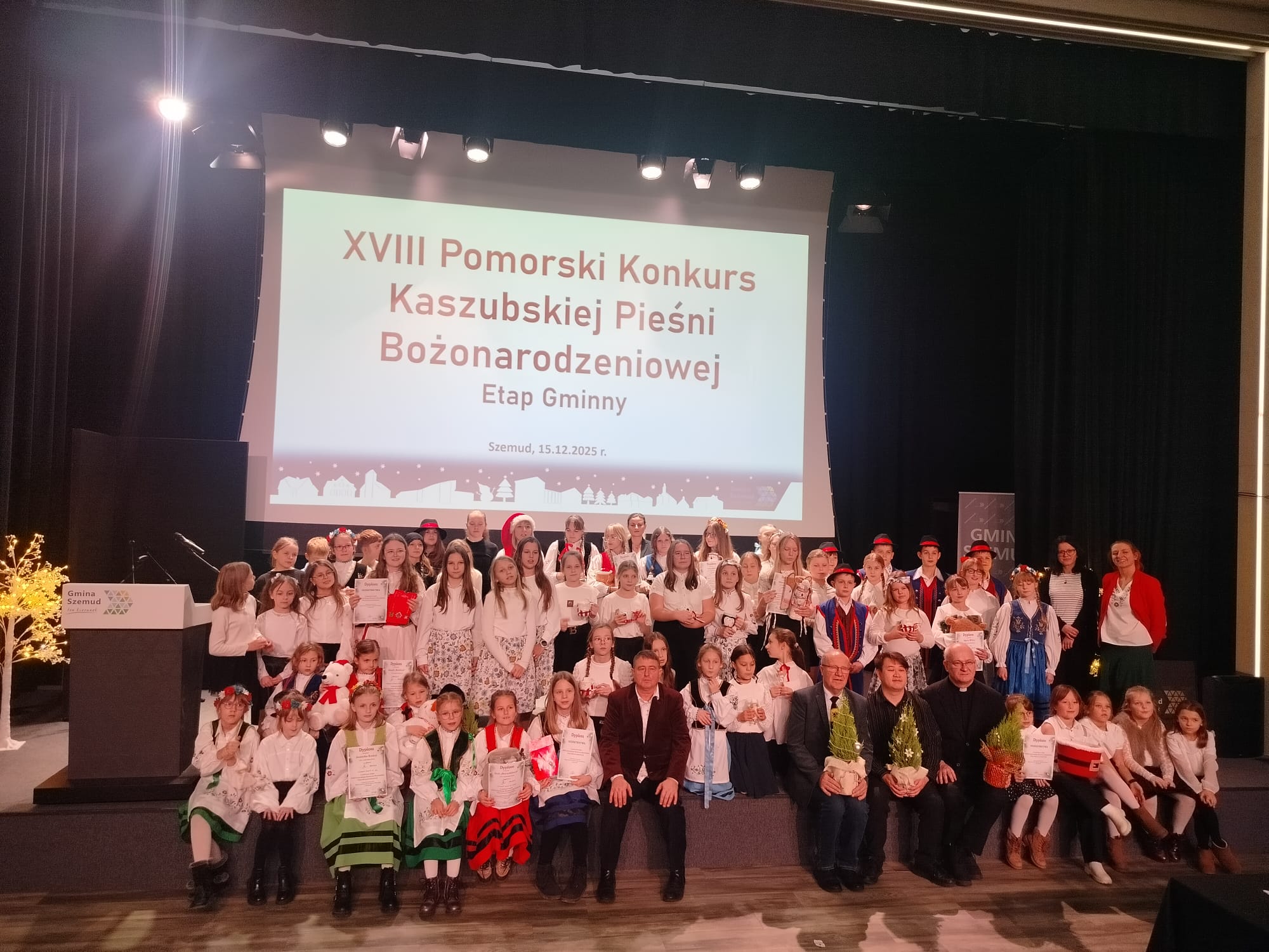 Dnia 15 grudnia 2025r. w Szemudzie odbył się etap gminny XVIII Pomorskiego Konkursu Kaszubskiej Pieśni Bożonarodzeniowej.