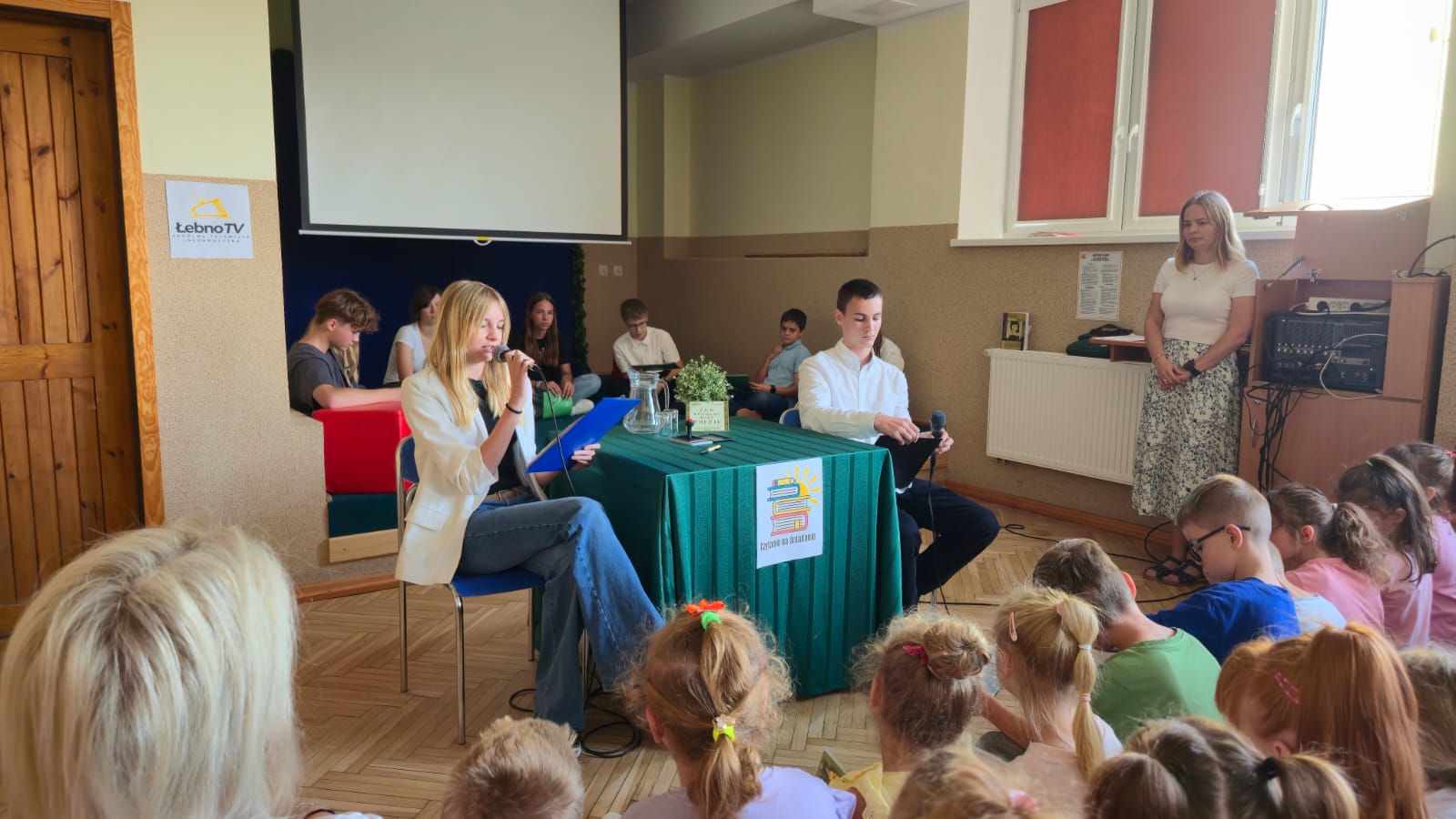 W dniu 10 września 2025r. to w naszej szkole odbyło się Narodowe Czytaniew wersji programu telewizyjnego ,,Czytanie na śniadanie", który został wyemitowany przez Szkolną Telewizję Informacyjną TV Łebno.