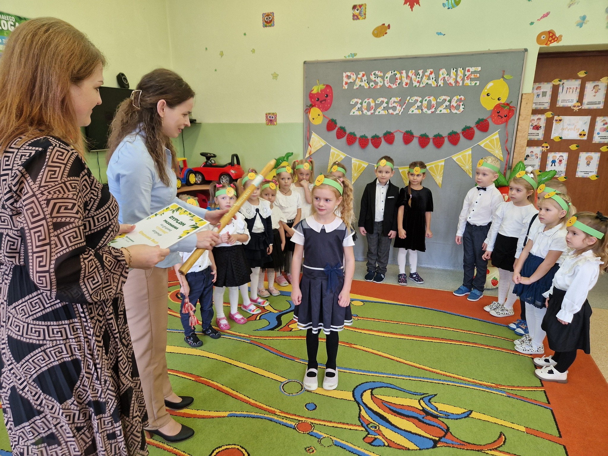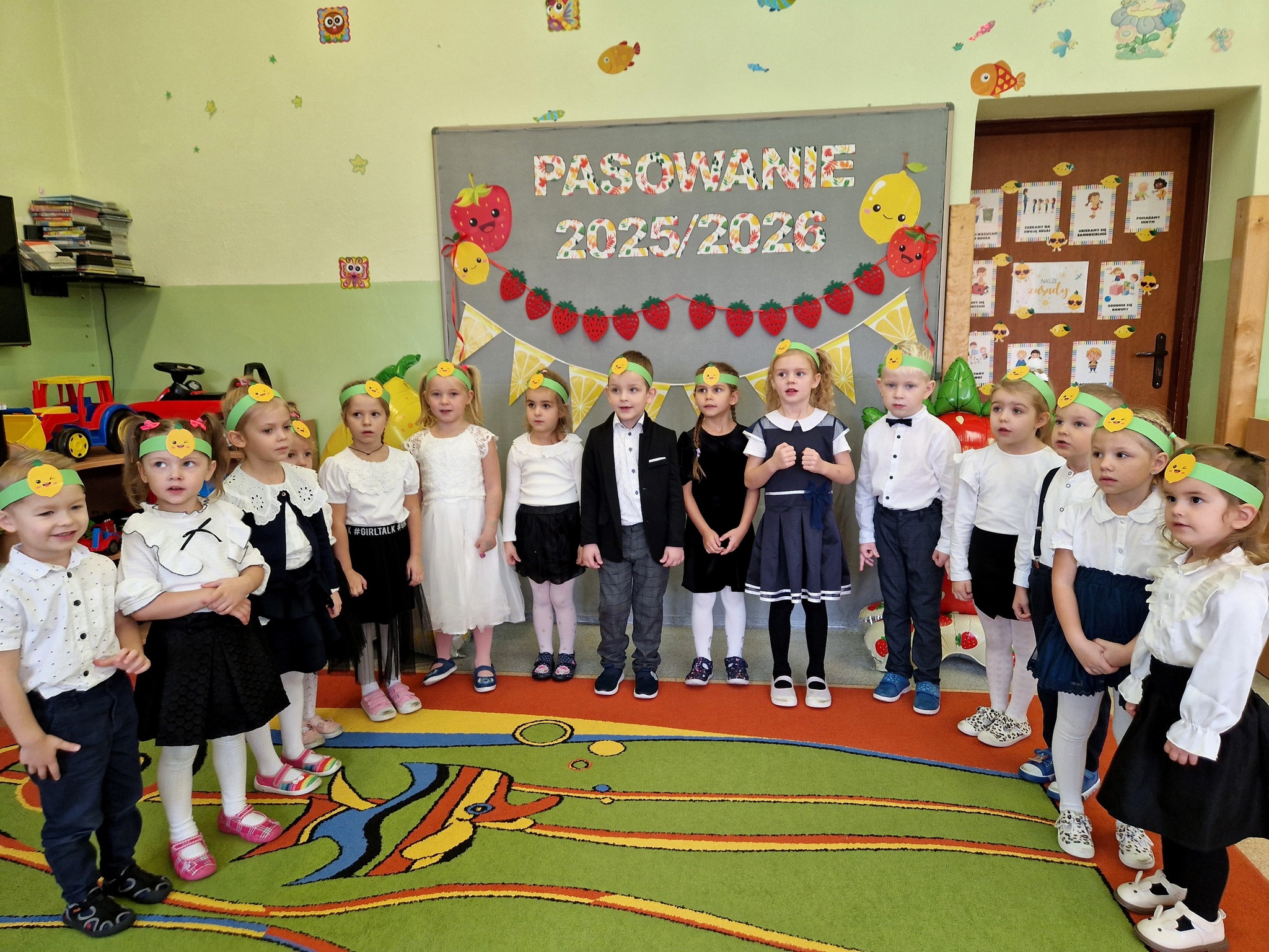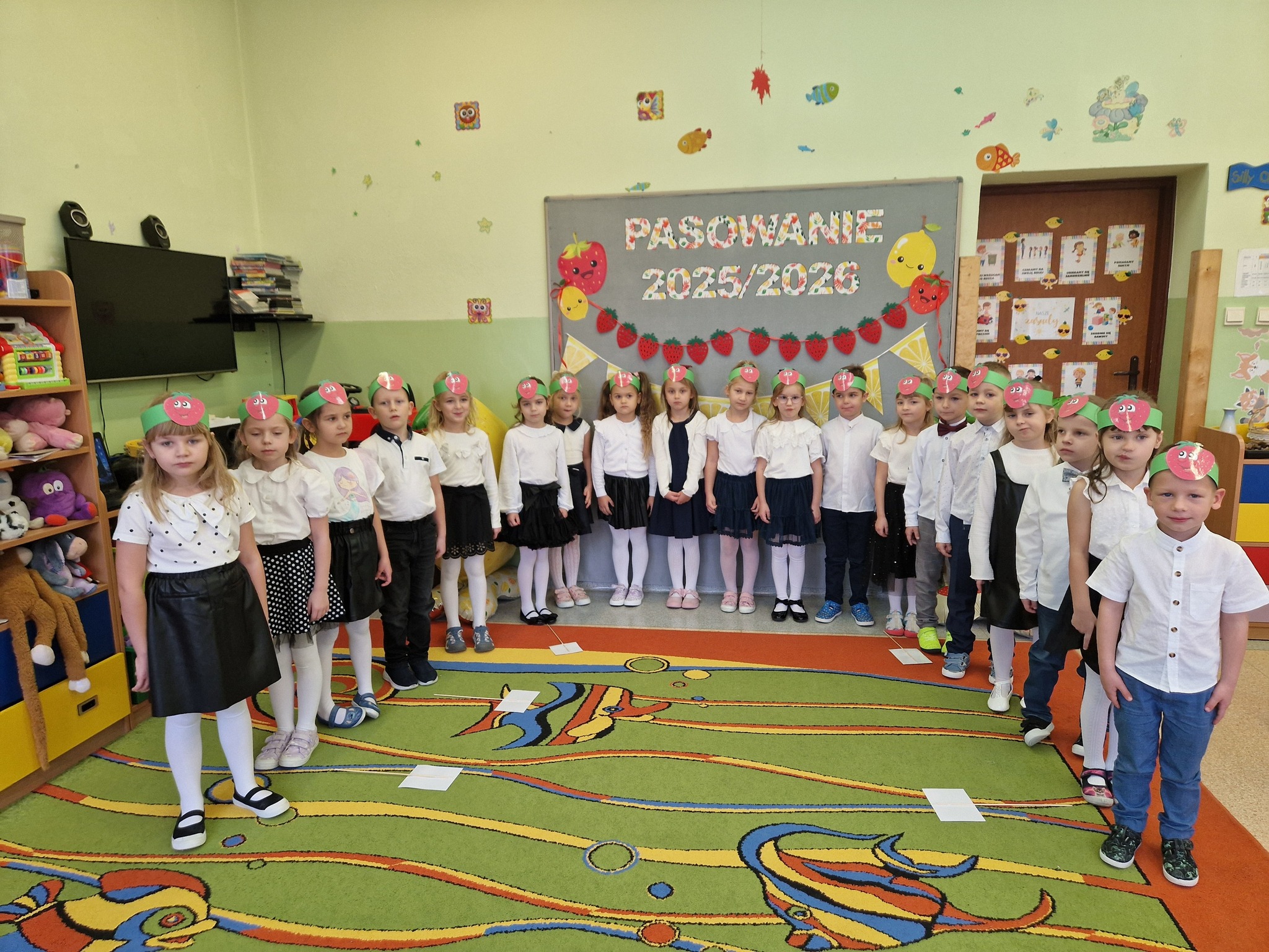 Dnia 31 października 2025r. w oddziałach przedszkolnych Szkoły Podstawowej im. Jana Pawła II w Łebnie odbyło sie pasowanie na przedszkolaka.