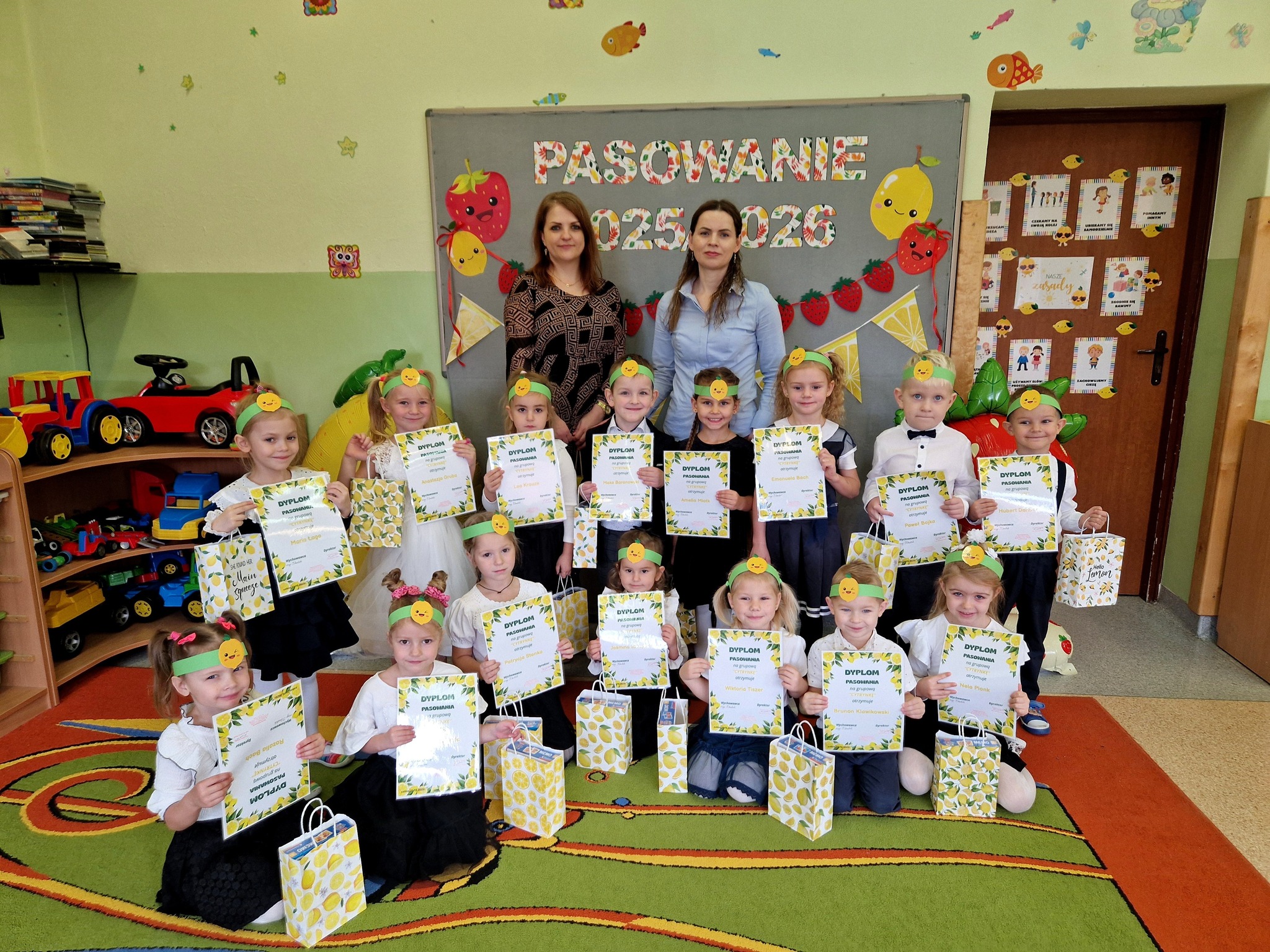 Każde dziecko otrzymało pamiatkowy dyplom oraz drobny upominek. Uroczystość zakończyła sie wspólnym zdjęciem.