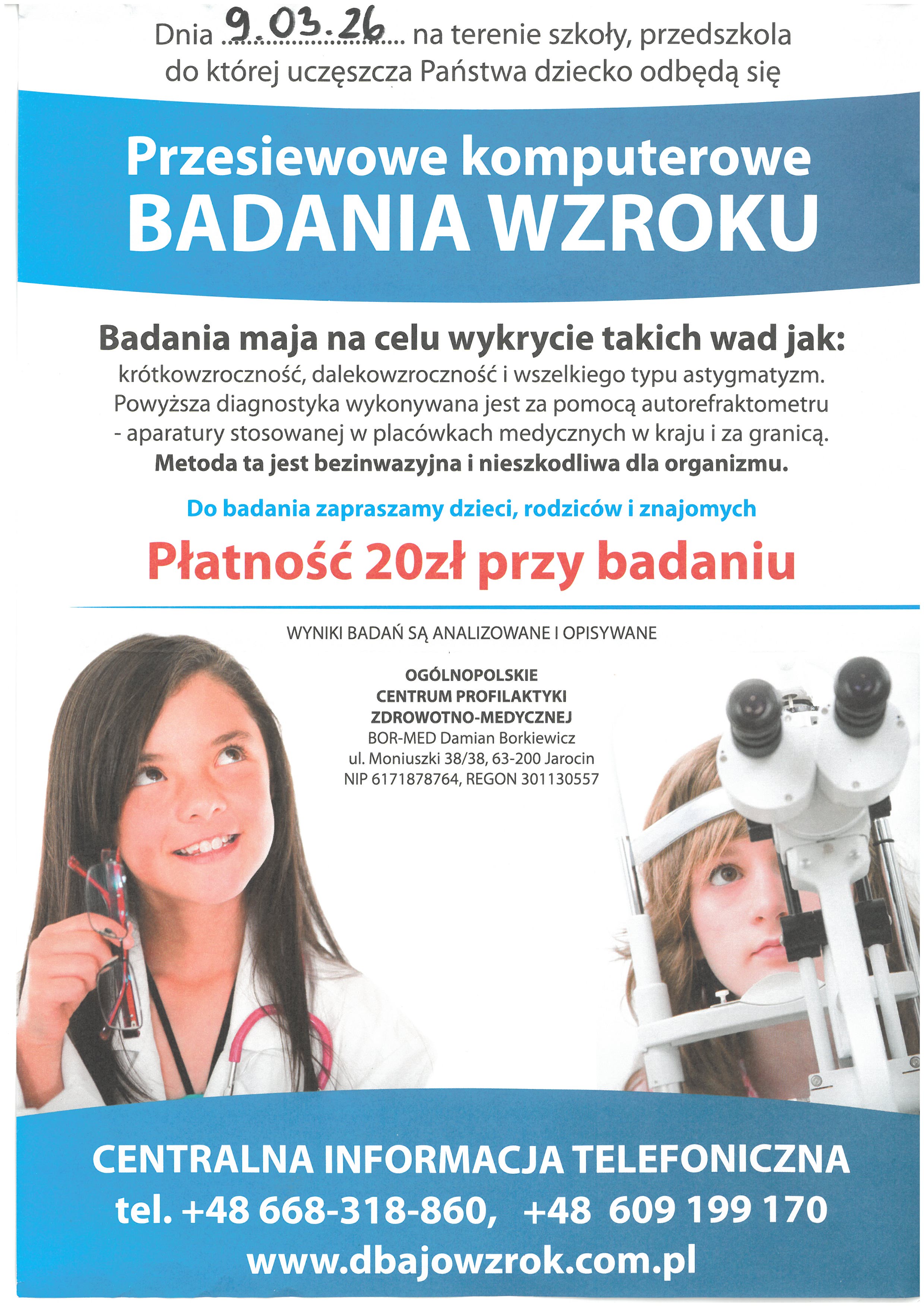 bilety informacyjne dot. badania dostępne u wychowawców klas
