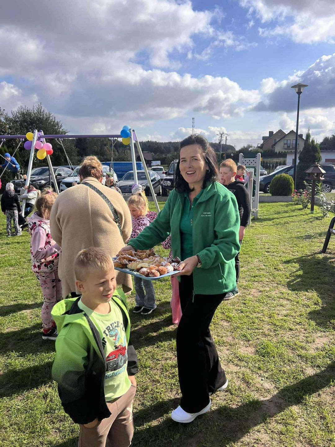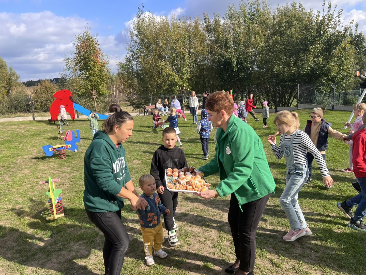 Nie zabrakło również słodkiego akcentu – KGW ŁEBNO,,Koło na Wesoło'"przygotowało dla dzieci pyszny poczęstunek , który wywołał mnóstwo uśmiechów i radości.