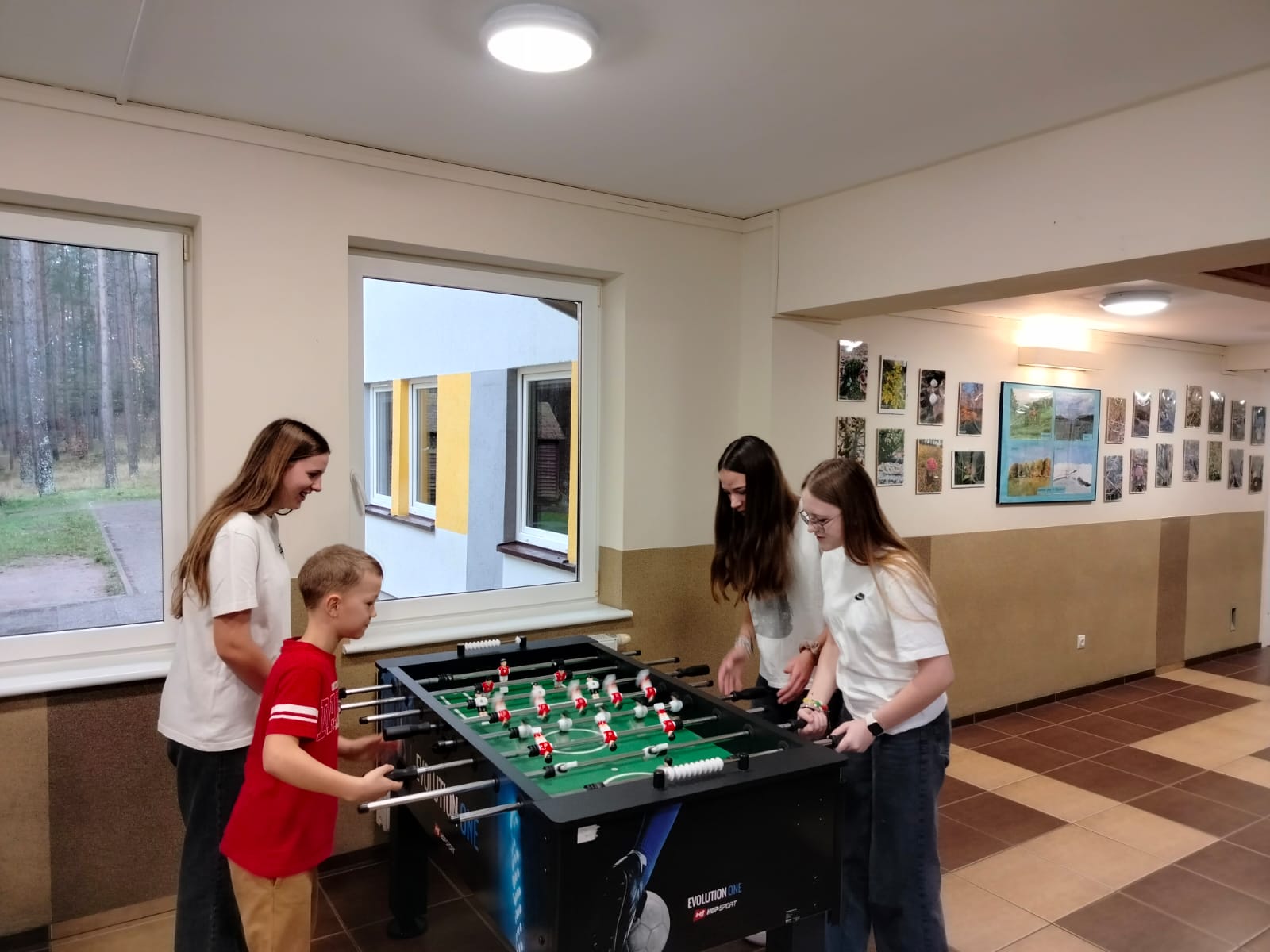 Po przyjeździe do Wygonina zakwaterowaliśmy się w ośrodku, położonym w pięknej, leśnej okolicy. Przed kolacją spotkaliśmy się na świetlicy z wychowawcami ośrodka, którzy przedstawili nam zasady i program pobytu. Wieczorem odbyły się zajęcia na sali gimnastycznej.